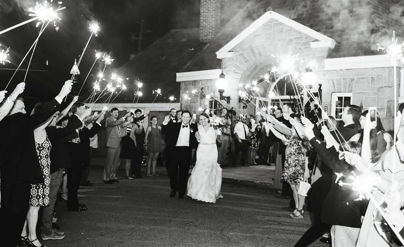 It just so happened, as we left our reception late that night after all the dancing and carrying-on, William prevented me from slipping and falling again. We were in the middle of running through the tunnel of sparklers and cheering guests when he stopped me, holding my hand and my elbow, and told me to step down off the curb before I tripped and fell.